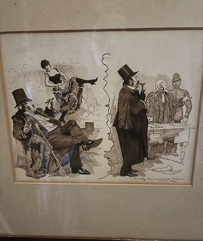 The artist, who went by the name Linley, was born in 1844 and was an apprentice marine engineer who made caricatures and studied art for pleasure. He was discovered by an editor at Punch in the 1860s and thereafter had a booming career making finely detailed, satirical illustrations. His wife, Mary Ann, and two children, lived a happy and creative life.