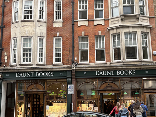 Marylebone Road was laid out in the late 1700s as a direct route into the heart of the city. Later, handsome Victorian mansion flats were built up, a train station followed, and in the 1930s BBC opened its broadcasting house here. London’s top physicians set up practices on Harley Street, further establishing its importance. But a large number of vacancies along the Marylebone High Street was troubling; not until the 1990s did the community activively recruit retailers to come in—and blessedly, this was done for quality, not the ability to rent. Hence, it’s a neighborhood of bookshops (even carrying my work, hooray!) small restaurants and coffee shops, and lovely household goods and clothing. We saw plenty of embassies and an international school, so the air rang with the soft accents of many nations.