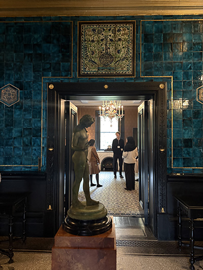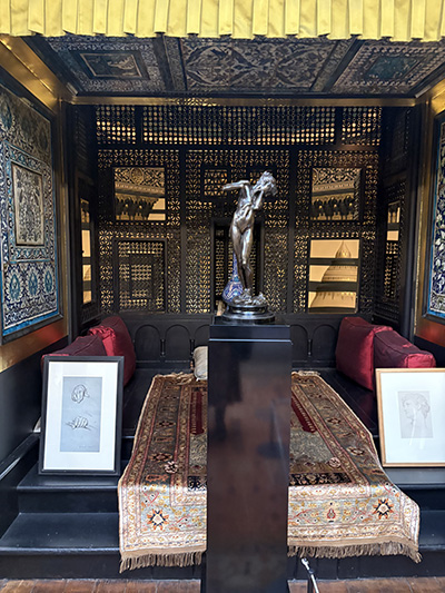 I’ve longed to visit Leighton House, the home of Frederic, Lord Leighton (1830-1896), an artist who painted portraits of many nobles and was on faculty at the Royal Academy of Arts. The artist grew up on the Continent, a fact that engendered lifelong suspicion of his nationality and religion. He ignored the snobs and threw himself into frequent travel to the Middle East and North Africa, where he gathered inspiration for painting and his home. Leighton, a lifelong bachelor, collected tiles, antiquities and textiles, mostly from Syria and Algeria, and also had British craftsmen replicate designs when he began furnishing his extraordinary, custom-built residence in the 1870s.