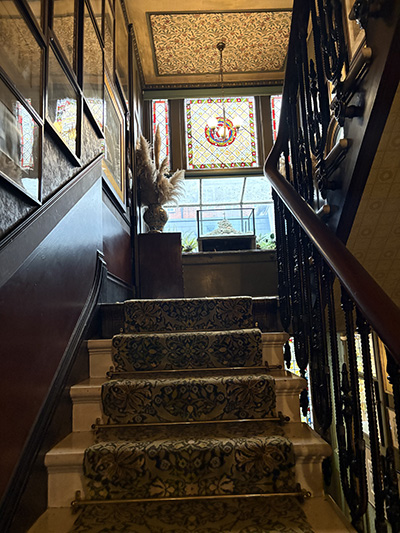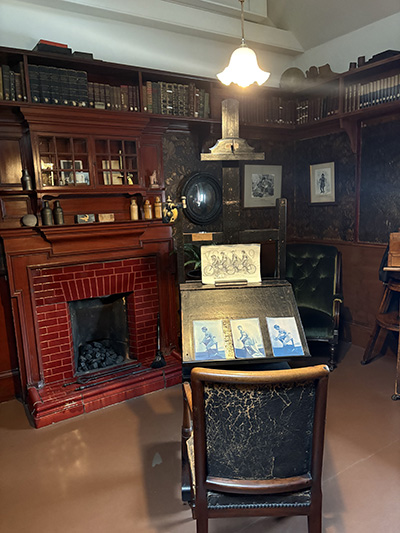 It was elating to travel through this house of a commercial artist and feel a kinship in design style. Both Mary Ann and Linley passionately decorated, occasionally having differing views of wallpaper and a room’s best use: who doesn’t live this way? Sambourne House is an epic example of the Aesthetic and Arts & Crafts movements. The home displays rich, deep colors that speak of cozy autumn and has timeless William Morris wallpapers in so many rooms, even that of the home’s maidservant. I loved seeing Sambourne’s drawing table and the photographs he’d made of friends poised in dramatic positions that he’d then work with to make his dynamic cartoons with charming Victorian flourishes.