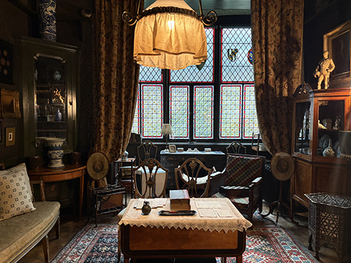 A few minutes’ walk away lay Sambourne House, another Holland Park artist home that had the benefit of original furniture and artwork by its former owner, Edward Linley Sambourne, a cartoonist for Punch Magazine. The house in the midst of a terrace group was part of a respectable middle class neighborhood, a step down from the grandeur of Leighton House, but all the more interesting to me because of its original wallpapers, pens, dishes, and every sort of bric-a-brac imaginable.