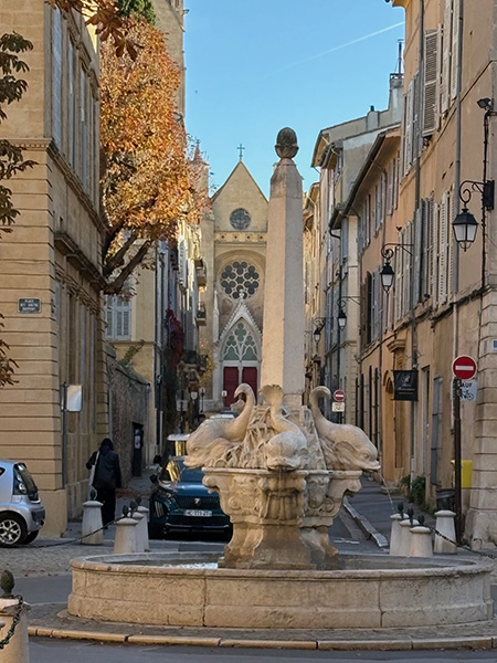 Persia lived in a charming one-bedroom in a possibly medieval century building that had been renovated into flats, and Diana and her husband were renting an AirBnB that was half of a grand 19th century house surrounded by gardens. Rents in Aix are higher than in a lot of parts of France, but with its cozy size, it can be easier here than in other places. It was routine for these two to stroll to shopping, public transport, and frequent get-togethers for Café or Apero (pre-dinner drink) with others. The city also has a sizable population of foreigners living year round. There are organized social groups that are English speaking and meant to support foreigners living in France. Some women I met in these groups have lived here for decades and have a current or former French partner; they understand and speak French with fluency, or very close to that. Others are retired from overseas careers like the State Department, or simply came from the US, Britain or elsewhere with modest to intermediate French that’s growing through daily living and language classes. Various friends commented on the peace they felt living here. They say it’s a peace built on a foundation that people of all means deserve free health care, and that guns and violence have been successfully restricted—if not vanquished—in France.